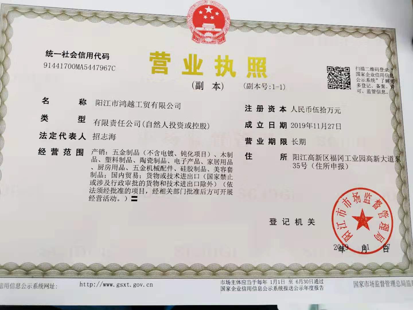 陽(yáng)江市鴻越工貿(mào)有限公司