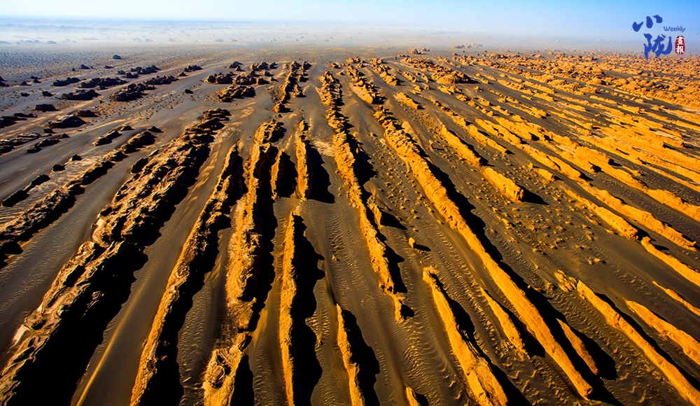 一隊(duì)隊(duì)整齊排列的雅丹像是整裝待發(fā)、氣勢(shì)磅礴的遠(yuǎn)航艦隊(duì),在浩瀚無垠的漠海上劈波斬浪,蔚為壯觀,實(shí)屬罕見。