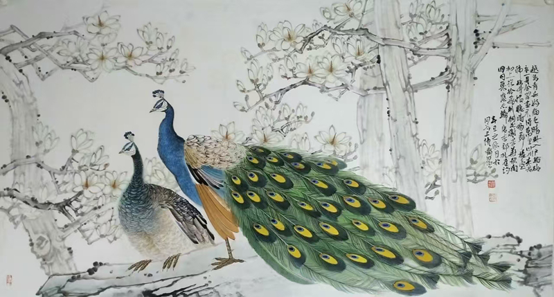 2009年,一幅工筆《粉蝶戲牡丹》的成功售出,成為王自強藝術生涯的轉折點。這幅細膩靈動的作品不僅帶來經(jīng)濟收益,更讓他意識到傳統(tǒng)工筆畫的市場潛力。此后十年間,他創(chuàng)作的《孔雀牡丹》等工筆畫作屢獲佳績,八尺整張作品曾拍出2萬余元高價。但真正讓他在書法界嶄露頭角的,是對漢隸的深入探索。