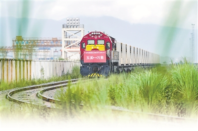 8月23日,前往老撾萬(wàn)象的國(guó)際貨物列車駛出中老鐵路中國(guó)玉溪研和站。當(dāng)日,中老鐵路國(guó)際貨物列車(玉溪—萬(wàn)象)實(shí)現(xiàn)雙向開行。新華社記者 陳欣波 攝
