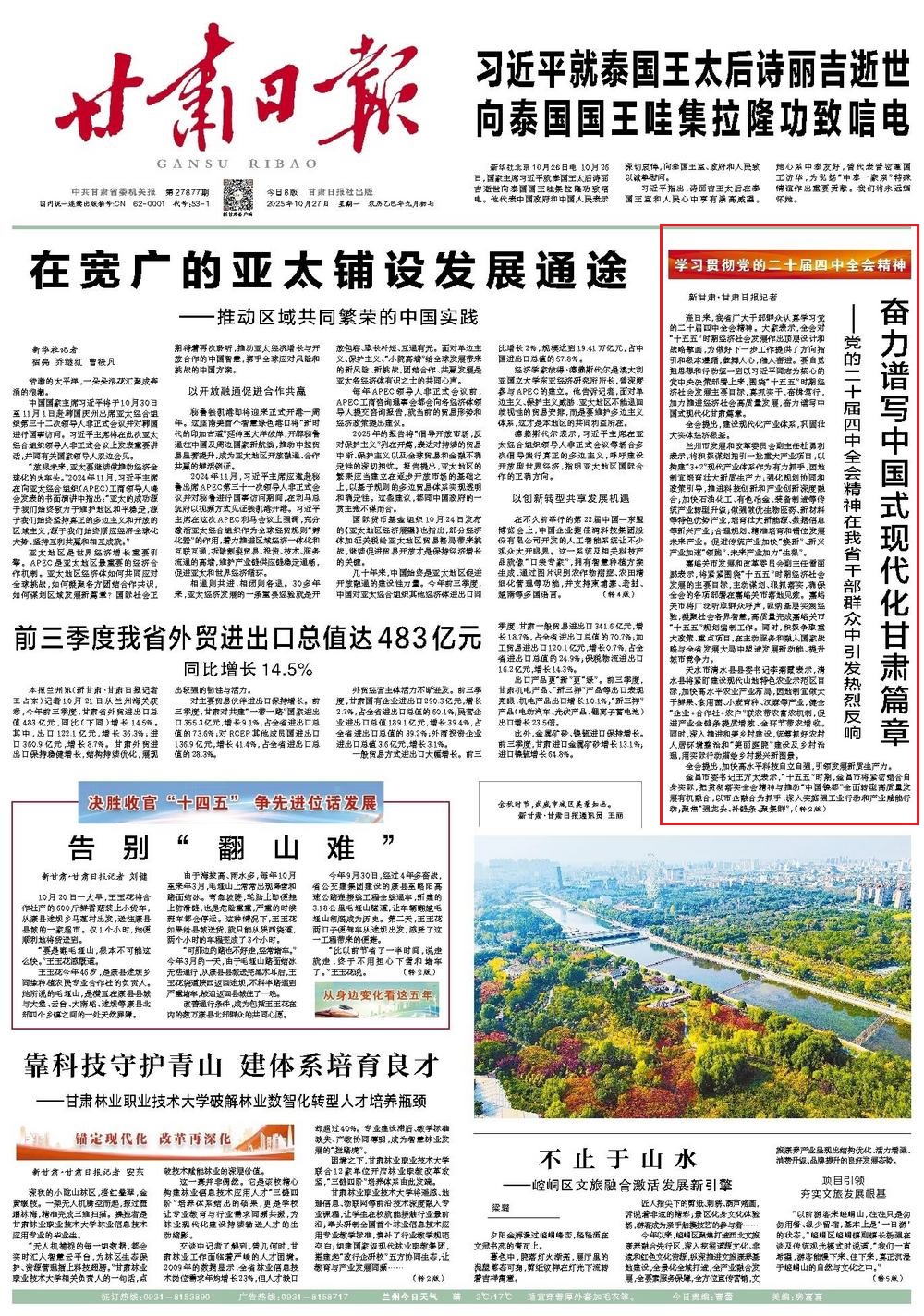 《甘肅日報》2025年10月27 第1版