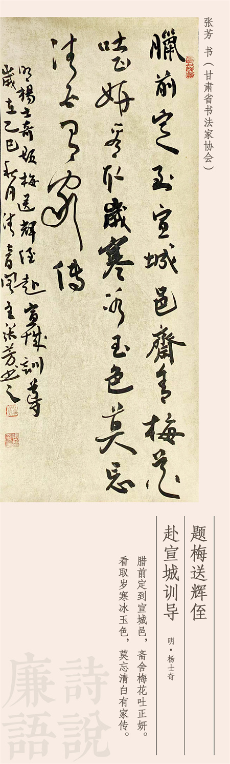 楊士奇是明初重臣,歷經(jīng)五朝,任職四十余年,長期擔(dān)任內(nèi)閣首輔,位極人臣,聲望卓著。楊士奇做事謹(jǐn)慎,為官清廉,注重家教,以清白廉潔教育子孫,子侄輩為官者眾多,大都保持了良好的官聲和操守。他的一個堂侄楊輝初次走上仕途,要去宣城擔(dān)任儒學(xué)訓(xùn)導(dǎo),這是一個從八品的主管當(dāng)?shù)乜婆e、教育工作的小官。楊士奇很重視侄子的仕途第一步,臨行前想把家族的家風(fēng)家訓(xùn)強調(diào)一下,便專門畫了一幅梅花圖,并題下這首詩,送給侄兒。