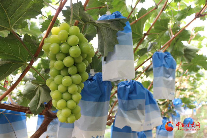 陽光染就青璃串,秋露凝成琥珀香。近日,高臺縣南華鎮(zhèn)智號村“陽光玫瑰”葡萄陸續(xù)成熟,爭“鮮”上市。走進(jìn)葡萄種植大棚,藍(lán)白漸變的套袋既藏著果實(shí)悄悄蛻變的痕跡,也為“陽光玫瑰”附上了一層朦朧的神秘感,讓人站在葡萄藤下忍不住想湊近,看看袋里正醞釀著怎樣的青綠與香甜。