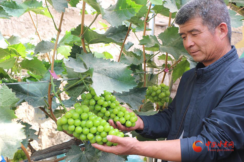 采摘園內(nèi),工人們正忙著為訂單挑選、采摘、裝盒……“我們這里光照足,結(jié)出的‘陽光玫瑰’葡萄果粒飽滿緊湊,果香中帶著玫瑰花香,脆滑爽口、馥郁香甜,顧客都比較喜歡吃。葡萄價(jià)格每斤20元,目前整體收益不錯。”基地負(fù)責(zé)人王煜輝說。