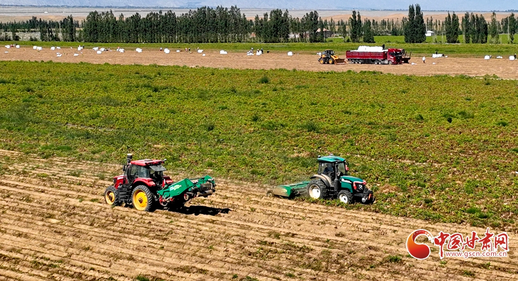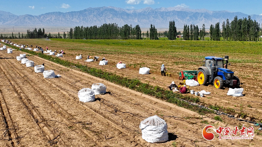 8月14日,祁連山下的張掖市高臺縣新壩鎮(zhèn)馬鈴薯種植基地一片繁忙。收獲機(jī)在田間穿梭,碩大的馬鈴薯破土而出,工人們正加緊進(jìn)行撿拾、分揀和裝車。