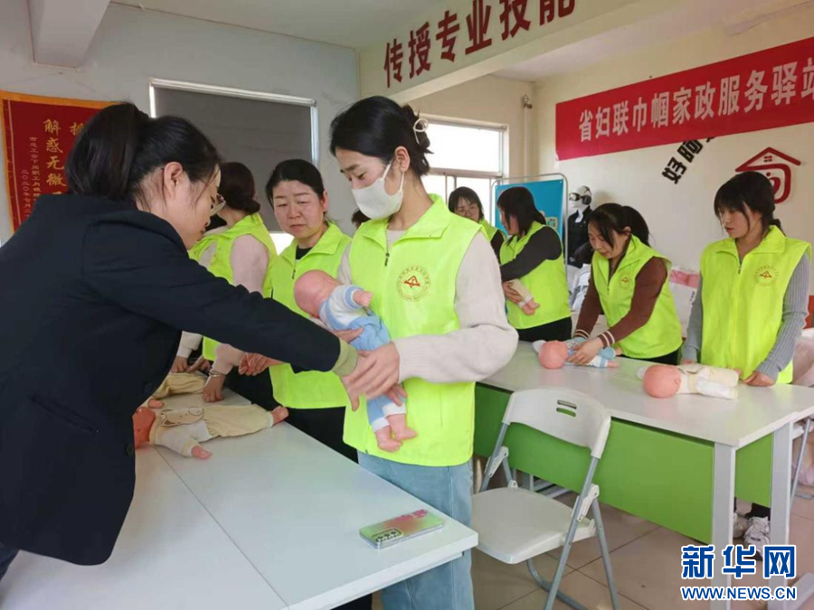 圖為蘭州市城關(guān)區(qū)酒泉路巾幗家政服務(wù)驛站舉辦母嬰護理技能培訓班。(甘肅省婦聯(lián)供圖)