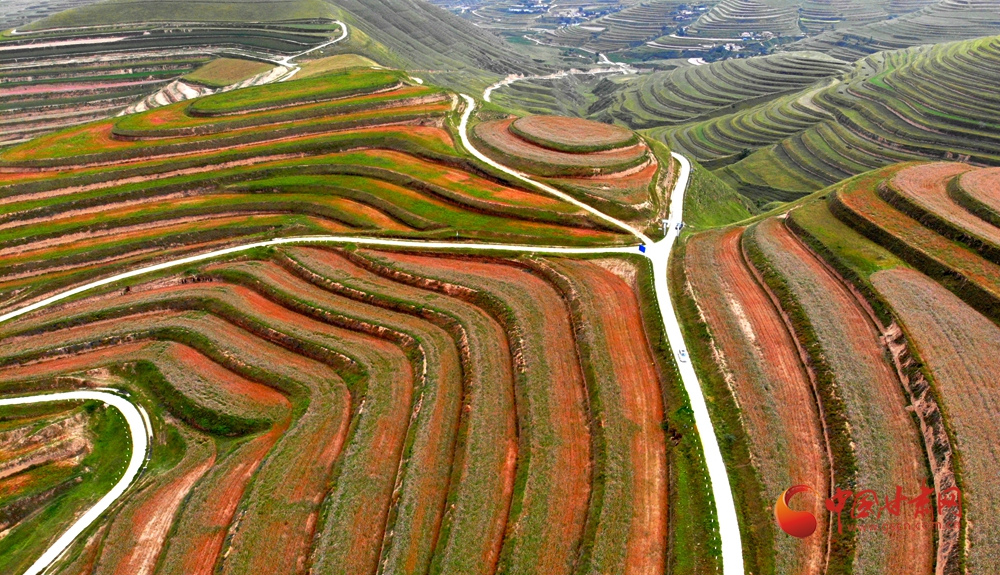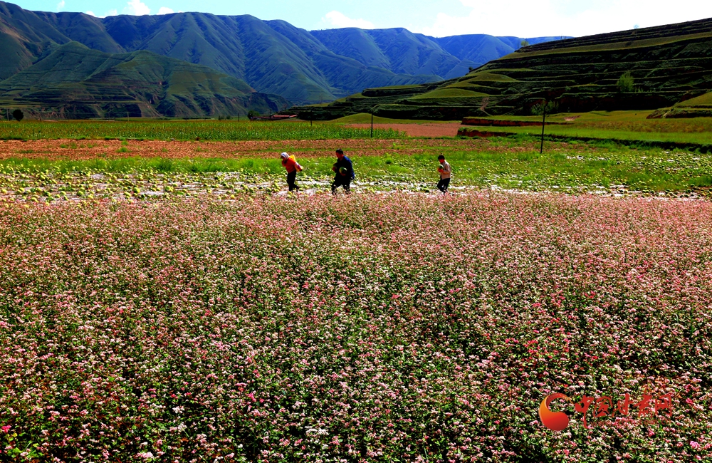 初秋時(shí)節(jié),會(huì)寧柴家門鎮(zhèn)樊郭村正值盛花期的百畝蕎麥競(jìng)相綻放,層層花浪隨風(fēng)起伏,清甜芬芳縈繞間蜂飛蝶舞,繪就一幅生機(jī)盎然的秋日畫卷。這片絢麗的梯田花海,不僅是當(dāng)?shù)?ldquo;以秋補(bǔ)夏、以復(fù)種促增收”戰(zhàn)略的生動(dòng)注腳,更是土地孕育豐收的希望詩(shī)篇。