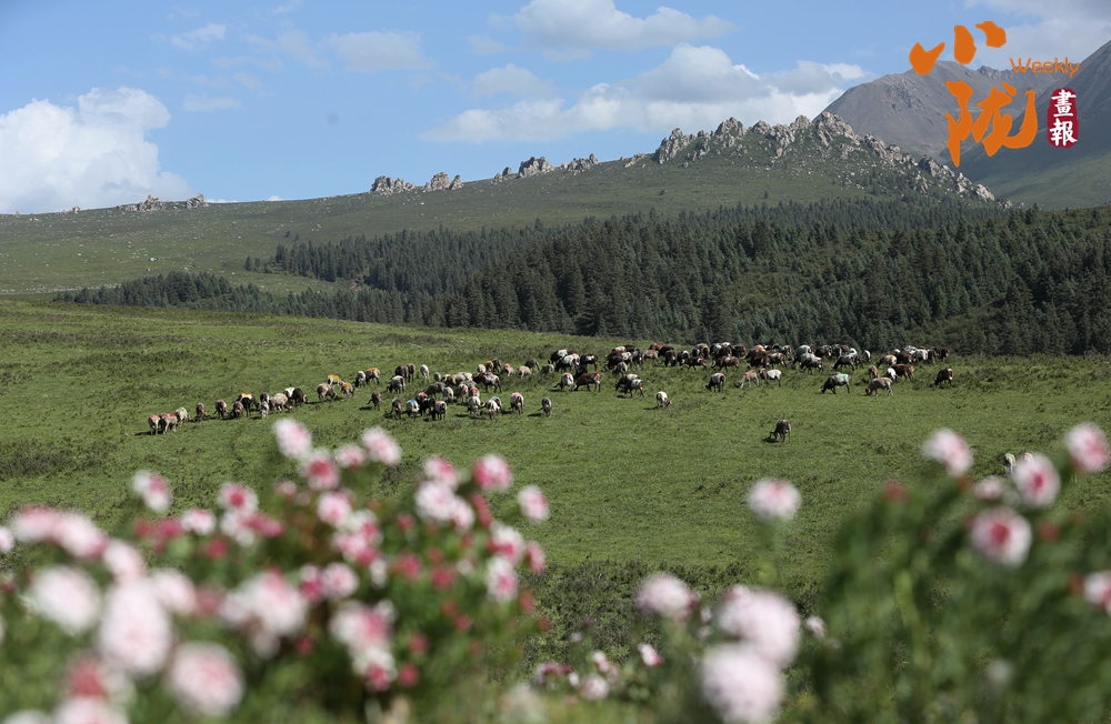 祁連下的康樂草原,是肅南裕固族人生活的地方。這里風光秀美,山地高原交相呼應(yīng),丘陵漫甸連綿起伏。放眼周圍,遠處祁連山巍峨挺拔,近處樹木郁郁蔥蔥,優(yōu)美壯觀。
