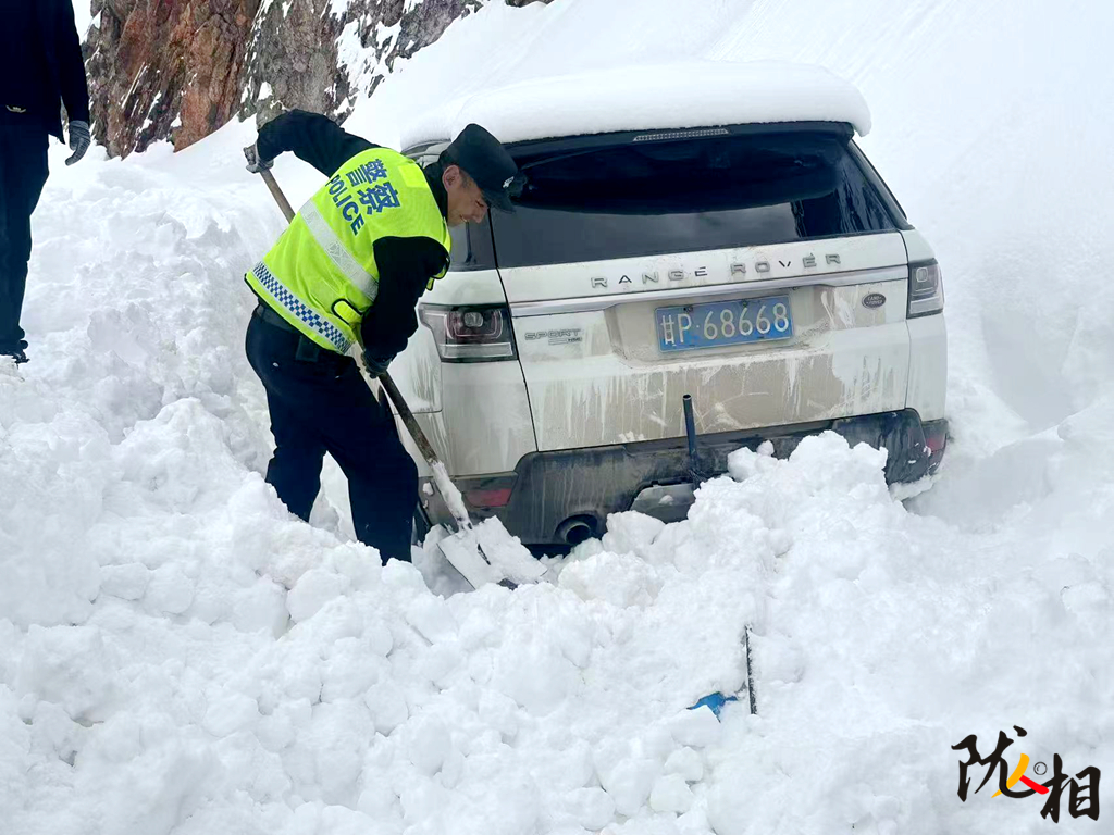 隨著江迭公路成為網(wǎng)紅自駕路線,旦知刀杰的工作增添了新的挑戰(zhàn)。2024年1月,一家5口被困在光蓋山積雪中,其中一位92歲老人出現(xiàn)高反癥狀。旦知刀杰頂著凜冽寒風前往救援,為老人給氧、脫下自己的棉衣披在老人身上,并將老人背至警車處火速送醫(yī)。4月的一個夜晚,暴雪突襲,他帶領(lǐng)戰(zhàn)友在積雪中徒步2小時,連續(xù)奮戰(zhàn)9小時,安全轉(zhuǎn)移30余名被困游客。