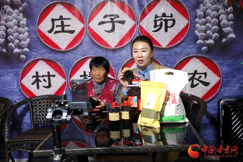 楊清艷帶領三奶奶直播賣貨。喬潔攝