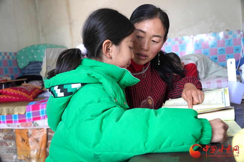 許改燕陪伴小女兒學習。路世玲攝