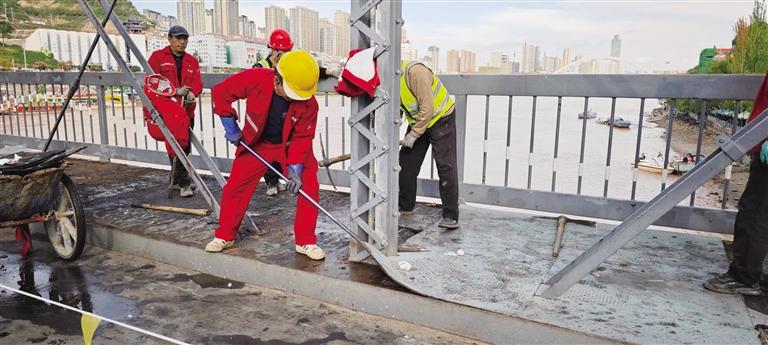 中國甘肅網10月13日訊 據蘭州晚報報道 為提升城市基礎設施品質,保障市民游客通行安全,蘭州市市政工程服務中心于10月11日正式啟動中山橋人行道橡膠板更換工程。