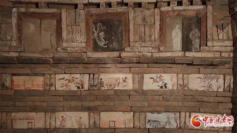 據考證,這批磚畫年代鎖定為公元3世紀中葉至4世紀初,以“一磚一畫”的極簡構圖,將河西走廊古民居、農牧、宴樂、神話與升仙想象封存至今,被譽為“可移動的地下壁畫館”。