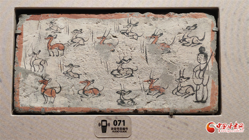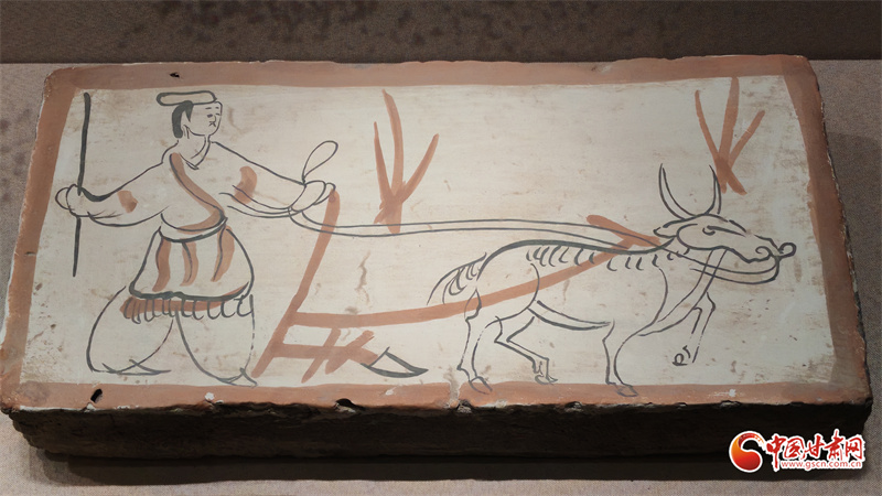 在博物館的“古冢丹青——高臺魏晉十六國時期墓葬壁畫藝術(shù)陳列”展廳里,記者看到,《二牛耕地畫像磚》生動再現(xiàn)了當(dāng)時的農(nóng)耕技術(shù):兩頭耕牛架著直轅犁,后隨的男子一手扶犁一手揚(yáng)鞭,展現(xiàn)了典型的“二牛抬杠”耕作方式?!赌谅箞D壁畫磚》則描繪了古人放牧鹿群的獨特場景,為研究當(dāng)時的畜牧業(yè)發(fā)展提供了珍貴資料。